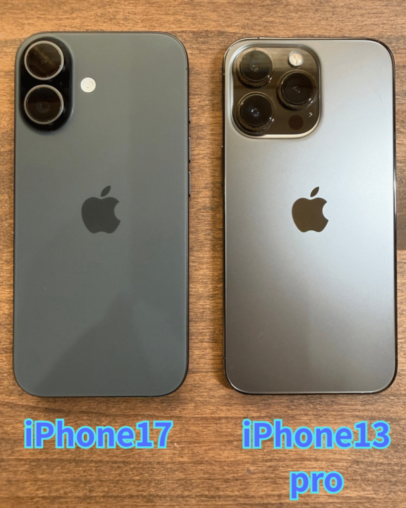 左:iPhone17 ブラック、 右:iphone13pro グラファイト です。
